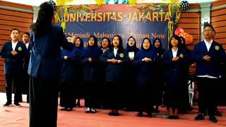 Mahasiswa Universitas Jakarta Fakultas Ilmu Administrasi, Administras Bisnis FIA UNIJA Pulomas menyanyikan lagu Indonesia Raya dengan sangat semangat.